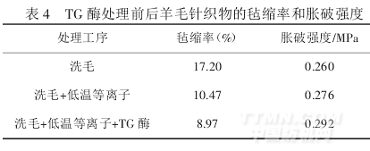 2.3 低溫等離子-TG 酶聯(lián)合改性對(duì)羊毛針織物性能的影響