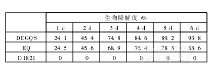 參照文獻[8]所述的方法對DEGQS和D1821進行生物降解試驗,結(jié)果見表5。