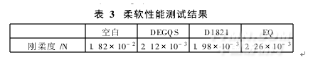 (3)DEGQS與目前常用的D1821和EQ相比較,其柔軟性能比D1821稍差,但優(yōu)于EQ;再潤濕性能和生物降解性能優(yōu)于D1821和EQ;對織物白度的影響小于D1821和EQ。