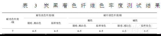 表3炭黑著色纖維色牢度測試結(jié)果