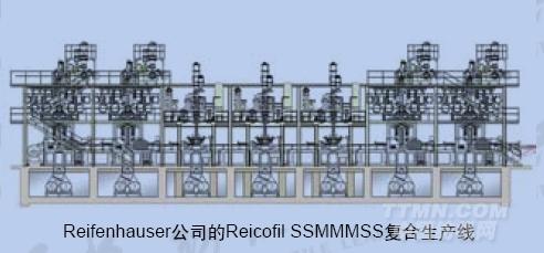 2007年年初,OerlikonNeumag公司的首條非織造布復合生產線開始了工業(yè)化生產。引進該生產線的是德國AscaniaVliesstoffe公司,該公司使用的生產線幅寬4m,采用3種不同的成型工藝:一個是OerlikonNeumag的雙組分紡粘模頭,一個是M&J的氣流成網成形頭和一臺梳理機,所形成的3層纖網(SPC)采用Fleissner(福來司拿)公司的AquaJet水刺設備進行加固。與傳統(tǒng)的生產工藝相比,這種復合工藝不僅優(yōu)化了產品質量和特性,而且改善了成本結構。