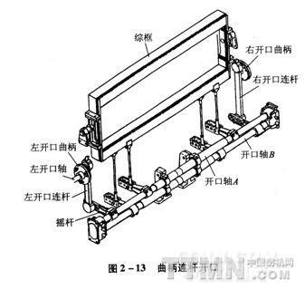開口機(jī)構(gòu)是織機(jī)五大機(jī)構(gòu)之一,是形成織物所必需的重要機(jī)構(gòu)。它的任務(wù)是根據(jù)織物組織的要求,依次將穿入各頁綜框上的經(jīng)紗分成上下兩層以形成梭口,待緯紗引入后將梭口閉合,使經(jīng)、緯紗形成交織狀。