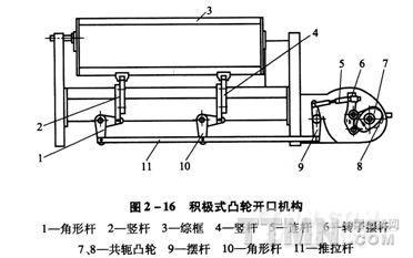 (2)積極式凸輪開口機構:為使開口運動更加平穩(wěn)和精確,尤其在織寬幅、重磅等織物時,噴氣織機采用共軛凸輪開口機構,即積極式凸輪開口機構,如圖2—16所示。