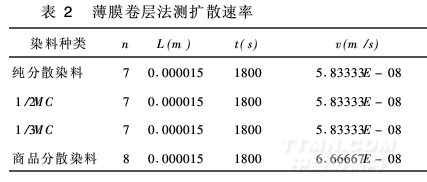 根據(jù)薄膜卷層法測(cè)定染料在纖維內(nèi)部的擴(kuò)散速率,計(jì)算結(jié)果見(jiàn)表2。