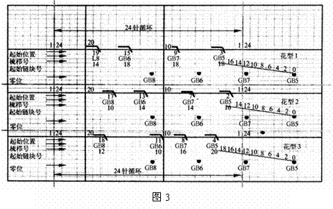 如果在機(jī)器上保持標(biāo)準(zhǔn)調(diào)整,推出部件和零位不變化,就可以生產(chǎn)系列花型。圖3顯示了生產(chǎn)系列花型的原理。