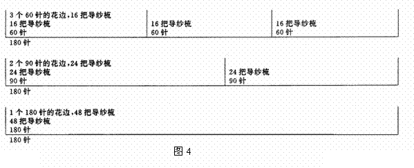53/1/24機(jī)器上,編織180針的花紋循環(huán)。48把花梳可以生產(chǎn)不同寬度的花邊。