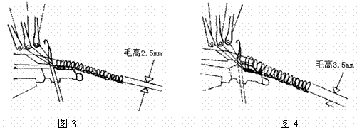 另外經(jīng)編毛圈織物剪毛后的毛絨高度一般不應(yīng)超過(guò)3mm,主要是因?yàn)檩^高的毛絨在使用過(guò)程中會(huì)發(fā)生畸變,并會(huì)產(chǎn)生不適當(dāng)?shù)墓鉂珊陀纺[的外表,另外從生產(chǎn)角度考慮也不夠經(jīng)濟(jì)。