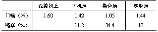 由于網(wǎng)眼織物的橫向縮率較大,特別在染色后,門幅減小了34.4%左右。染色、脫水后,上樹脂、短環(huán)預(yù)烘、焙烘均在該門幅下進(jìn)行,然而定形時(shí)門幅約擴(kuò)大0.4米,這對(duì)樹脂的拉力過大,將導(dǎo)致樹脂膜斷裂。因此我們應(yīng)該在染色前增加一次預(yù)定形,使其幅寬接近定形幅寬。