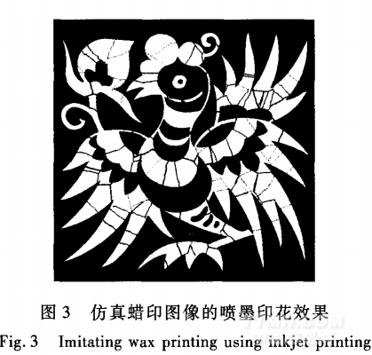 冰紋是手工蠟印的主要特征,種類多樣,風格迥異。傳統(tǒng)印花方式因需要制版和花回對接,冰紋必須是固定的圖案,這樣就有悖于真實蠟印的冰紋特征。噴墨印花不受此限制,使用計算機仿真冰紋,可以印制出同一圖案不同冰紋效果的仿蠟印面料,能達到與手工蠟印高度仿真的藝術(shù)效果。