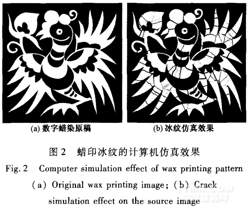 現(xiàn)有的計算機繪圖軟件功能非常強大,可繪制出各種渲染、云紋等紡織品圖案的特殊效果,蠟印圖案也可運用Illustrator、Photoshop等圖形處理軟件來繪制,但蠟印織物中變化無窮的冰紋圖案是直接繪制的難點,只能通過復制掃描稿中真實蠟印冰紋或使用數(shù)位板輸入方式手動描繪冰紋。這種繪制冰紋的方法工作量大,且不同的蠟印作品需要重復描繪,耗時耗工。采用計算機仿真模擬蠟印圖案是較為快捷的方法,可簡單有效地生成大量與真蠟印圖案相似的數(shù)字化圖形。