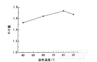 圖5 染色溫度與織物得色量K/S值的關(guān)系