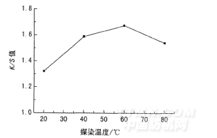 圖3 媒染溫度與織物得色量K/S值的關(guān)系