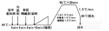 卡其色和湖綠色染色工藝曲線如下: