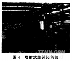 選用噴射式絞紗染色機(jī).如圖4所示.其結(jié)構(gòu)簡(jiǎn)單、操作方便、浴比較小、能耗較低,且缸內(nèi)絞紗色差小、染色質(zhì)量易控制。