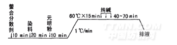 工藝流程100℃沸煮60min,經(jīng)水洗或去氧酶處理,水洗,使織物呈中性后待染。