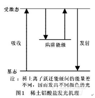 彩色與彩色光稀土夜光纖維在沒有可見光條件下呈現(xiàn)彩色光的原理是:由于稀土元素含有未充滿的4f殼層和4f電子被外層的5S2、5P6電子屏蔽的特性,在可見光區(qū)有類線性的吸收光譜和發(fā)射光譜及復(fù)雜的譜線,稀土離子躍遷能級(jí)間的能量差不同,因而發(fā)出不同顏色的光。例如,Y2O2S中的EU3+從5D0躍遷到7F1時(shí)產(chǎn)生橙色光,從5D0躍遷到7F2時(shí)產(chǎn)生紅色光。