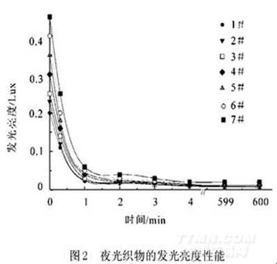 2.2夜光纖維的發(fā)光性能