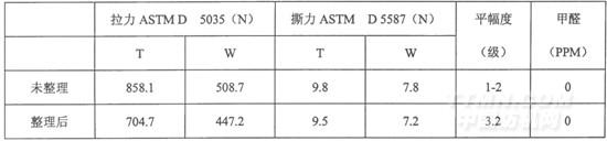 無醛樹脂WSD系統(tǒng),樹脂用量150~160g/L,焙烘溫度160-165度,時(shí)間40-50秒,可達(dá)到整理后平整度3級(jí)以上,降強(qiáng)在15%左右,且布面不含甲醛的良好效果。本系統(tǒng)柔軟劑和纖維保護(hù)劑的加入不僅可以改善織物的強(qiáng)力,而且賦予織物極佳的懸垂性,柔軟豐滿的手感,進(jìn)一步提高面料的檔次。使用這套系統(tǒng)整理的面料符合當(dāng)前綠色環(huán)保的理念及流行的趨勢(shì),有著廣闊的市場(chǎng)前景。