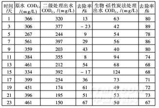 表3 穩(wěn)定運(yùn)行階段CODCr的去除效果