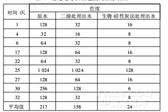 表4 掛膜階段色度處理效果