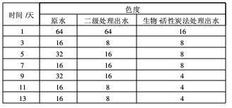表5 穩(wěn)定運行階段色度的去除效果