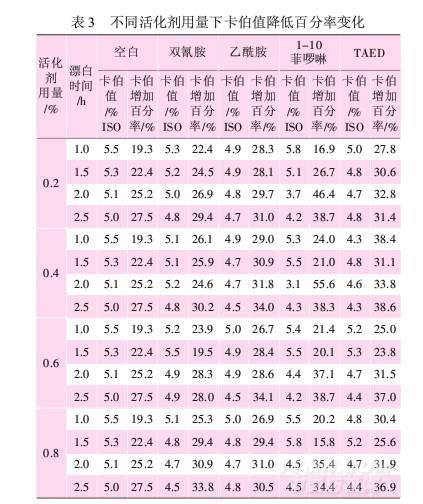 2.3活化劑對(duì)卡伯值降低的影響