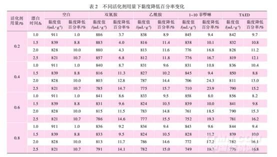 2.2活化劑對(duì)黏度降低的影響