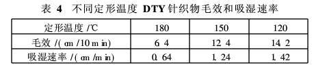 將不同定形溫度的DTY針織物進(jìn)行毛效對(duì)比測(cè)定,如表4。