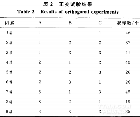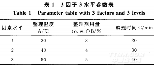為使納米抗菌針織物在具有較好的抗起毛起球整理效果的同時,較少影響到織物的其他性能,需在最優(yōu)工藝參數下對其進行整理.本文根據單因子試驗結果及規(guī)律分析,每個因子取3個水平組成正交表進行正交試驗.試驗因素水平表如表l所示,按照正交表I。(3。)安排正交試驗,得到正交試驗結果如表2所示,極差分析和方差分析分別如表3和4所示.