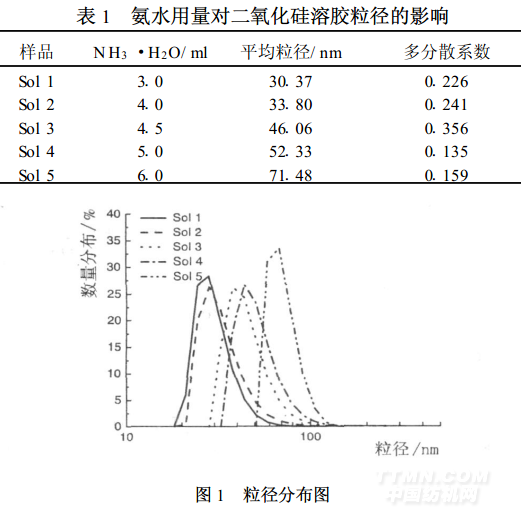 氨水用量對(duì)二氧化硅溶膠粒徑的影響