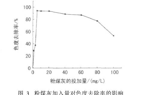 取500 mL染色廢水,分別投加1、3、5、10、20、40、60、80、100 g粉煤灰,聚硅酸鎂的投加量為100 mg/L,結果見圖3。