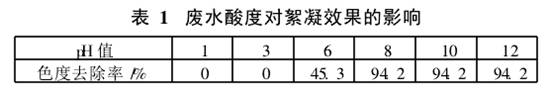 在上述最佳投藥條件下,改變廢水pH值,觀察絮凝體系對其的處理效果,結(jié)果見表1。