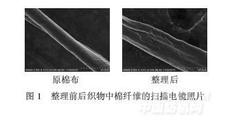 由圖1可知,棉纖維經(jīng)整理后表面形成一層致密且較均勻的含氟聚丙烯酸酯膜,該膜包裹在纖維表面,使纖維具有拒水性.