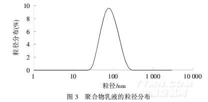 從圖3可以看出,聚合物乳液粒徑主要分布在20~120 nm,平均粒徑為76.9 nm,說明聚合物乳液粒徑小,粒徑分布較均勻.