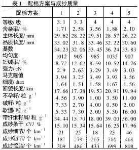 2、配棉及其成紗質(zhì)量狀況