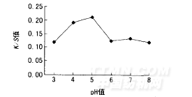 如前所述,不加酶時,改變?nèi)芤簆H值對沾色的影響不大。但在實際生產(chǎn)中,不同pH值下沾色情況不同,是由于pH值對酶蛋白本身的影響造成的。其本質(zhì)原因是酶蛋白跟纖維素纖維的不可逆吸附。