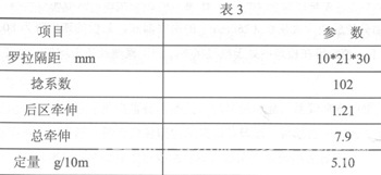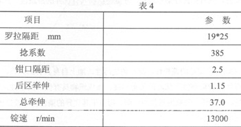(7)增加搖架壓力和適當降低羅拉轉速。主要工藝參數見表4。