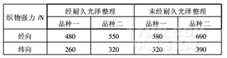 表1 耐久光澤整理后大提花面料的強(qiáng)力