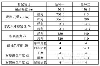 表2中,大提花面料經(jīng)上述工藝染整加工后的各項(xiàng)物理指標(biāo)。