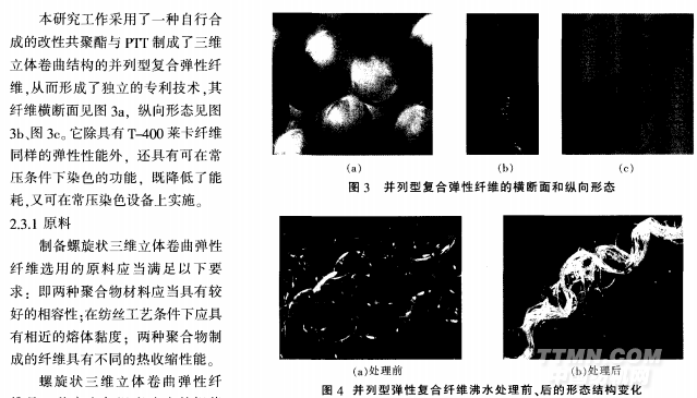 近年來.有關(guān)并列型復(fù)合彈性纖維的研究與開發(fā)工作很活躍有關(guān)原料組成方面的研究最多的仍屬PETrr組合此外.還有采用兩種不同特性黏數(shù)的PET、兩種不同特性黏數(shù)的、PErf/改性PET、PA6/改性PA6以及PET/PBT等關(guān)于生產(chǎn)工藝流程組織以及生產(chǎn)工藝條件控制的研究工作也屢見不鮮。