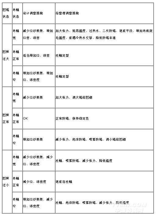 A.張力:增加整個(gè)工藝流程的張力,尤其是增加拉斜、預(yù)縮等處進(jìn)布的張力,可以有效減少緯向回彈;