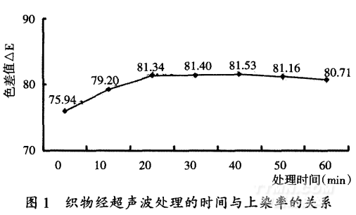 1.5.1織物經(jīng)超聲波處理的時(shí)間對(duì)上染率的影響