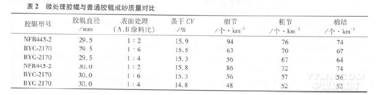 (9)對不同型號搖架加壓機臺,依據(jù)品種紗號,配置不同直徑的微處理膠輥,以較好發(fā)揮微處理膠輥的特性。