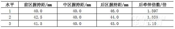 2.1對影響質(zhì)量的主要工藝參數(shù)、羅拉握持距、后區(qū)牽伸倍數(shù)等因素做了四因素三水平正交試驗(yàn)