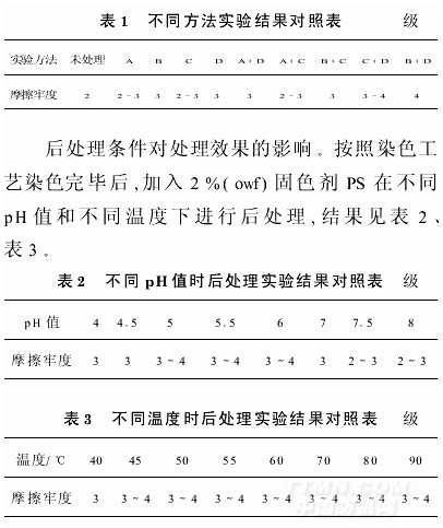 染色后處理(D):按照染色工藝染色完畢后,加入2%(owf)固色劑PS,在50℃處理20min,降溫出缸。