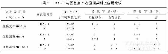 4.2.2DA-1在直接染料上應(yīng)用與固色劑Y的比較結(jié)果見表2