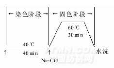 按1.4.1配方,將染料等依次加入染色杯中,按浴比1∶20加入蒸餾水.染色纖維質(zhì)量為2g,染色工藝流程為