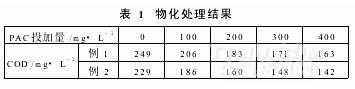 對上述三個試驗的出水進行物化處理,試驗結(jié)果見表1。