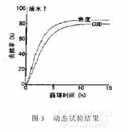 采用靜態(tài)試驗中確定的去除COD的最佳工藝條件,試驗時未調(diào)節(jié)廢水pH值,結(jié)果如圖3所示。