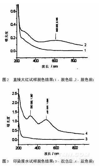 我們首先進(jìn)行了可溶性染料的脫色實(shí)驗(yàn),由此確定了影響脫色效果的多種因素的最適宜數(shù)值。然后用此裝置處理某廠取樣的染布廢水。